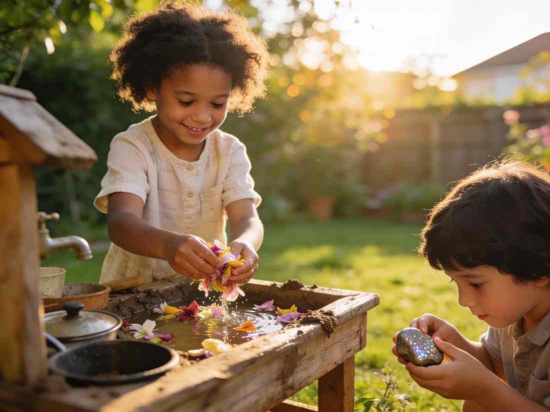 - The Mud Kitchen 2.0: It’s not just mud. It’s “Potion Making.” Provide jars, colored water, vinegar, baking soda, and local flowers. This teaches chemistry and sensory regulation.